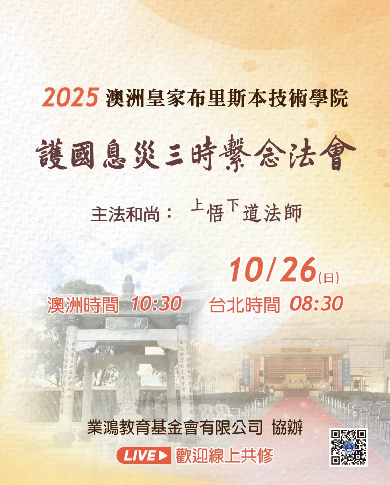 10/26 直播|澳洲皇家布里斯本技術學院護國息災三時繫念法會